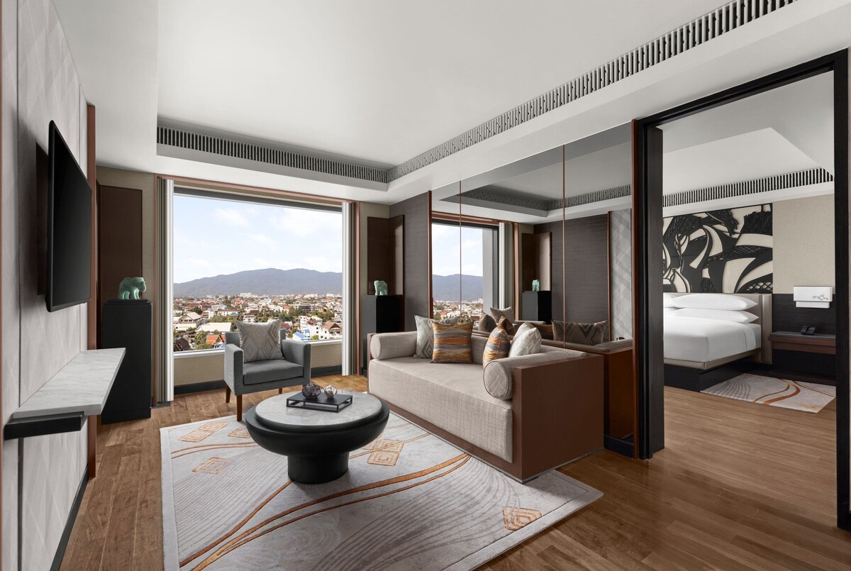The rooms at the Chiang Mai Marriott are designed with a "view-first" philosophy. Whether you choose a Deluxe Room or a sprawling Executive Suite, the floor-to-ceiling windows act as a frame for the stunning landscape outside.